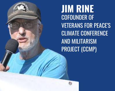 In 2020, he helped form the Veterans for Peace Climate Crisis and Militarism Project. During the 117th Congress, CCMP helped draft with Rep. Barbara Lee (D-CA-13) H. Res. 767, which calls on the Department of Defense to report and to reduce their greenhouse gas emissions. More recently, Jim has participated in protests in Washington, D.C., New York, NY, and Lansing, MI.